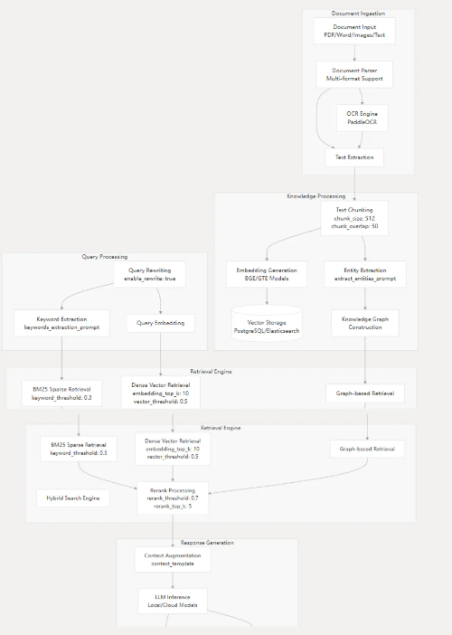 | 文档格式支持 | ✅ PDF / Word / Txt / Markdown / 图片(含 OCR / Caption) | 支持多种结构化与非结构化文档内容解析,支持图文混排与图像文字提取 |